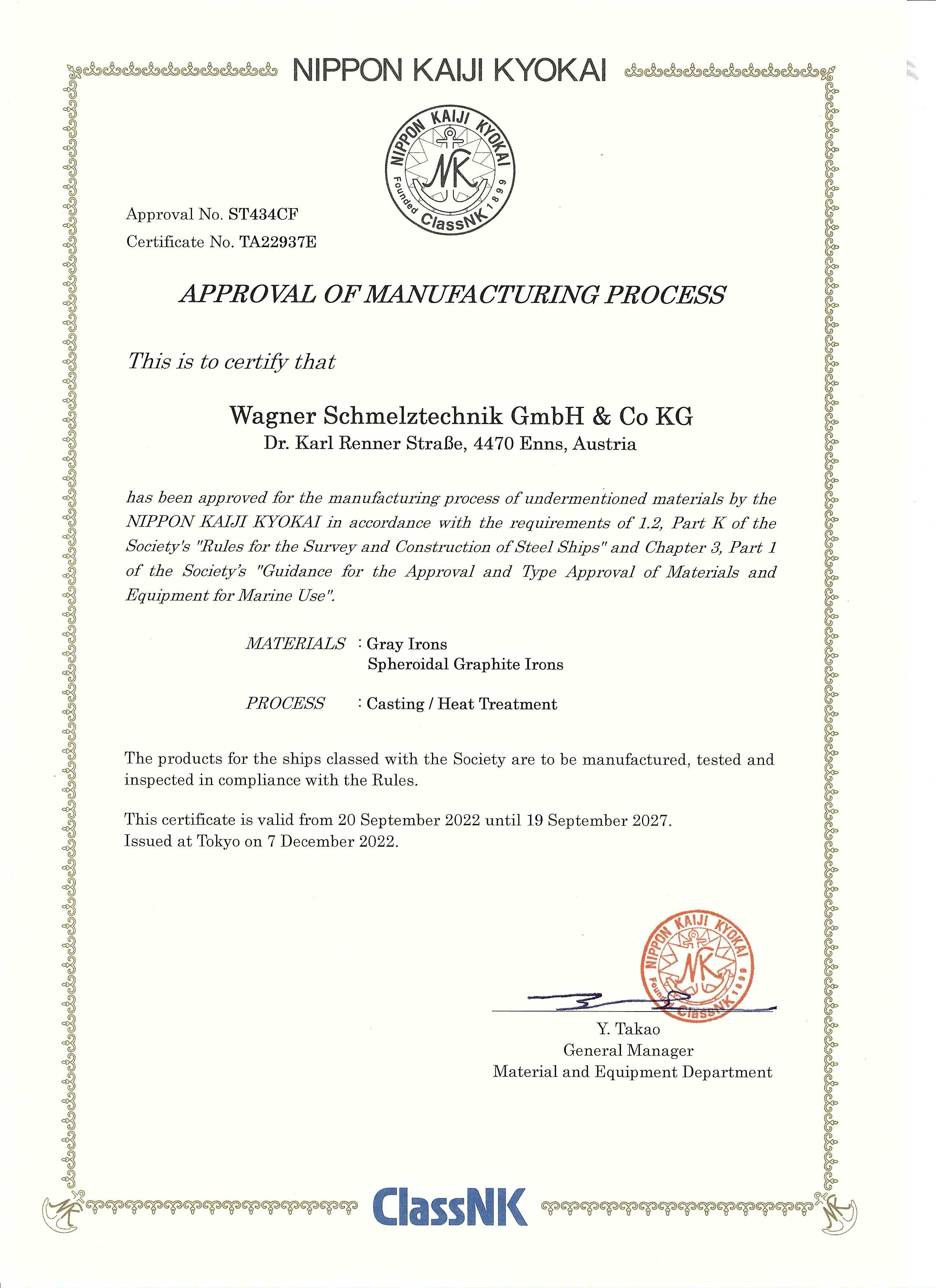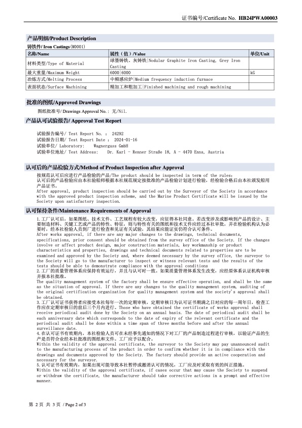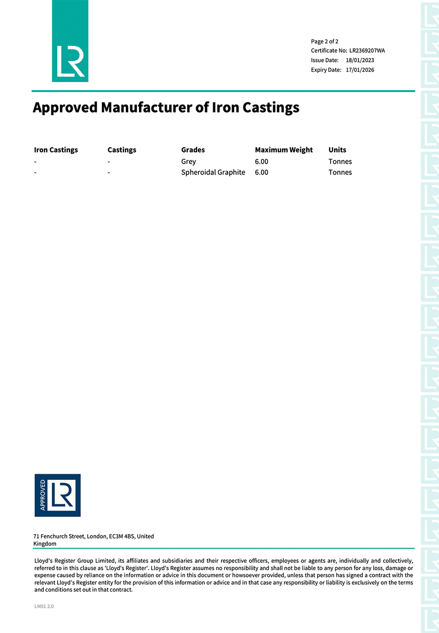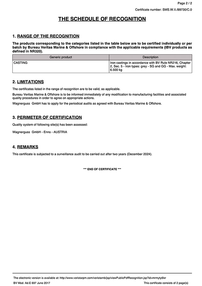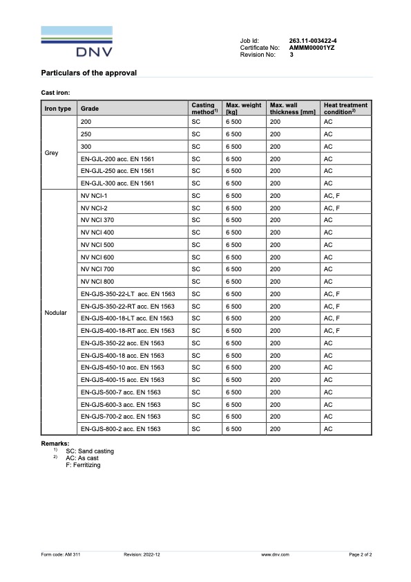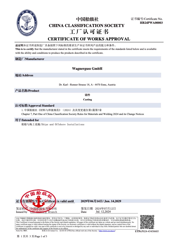 Die Sicherung unserer Qualität erfolgt durch ein TÜV-zertifiziertes Qualitätsmanagementsystem nach ISO 9001:2015. EN-GJL und EN-GJS von ABS, BV, CCS, DNV-GL, KR, NKK,LR und RINA zugelassen. Unseren Kunden bieten wir auch gerne Audits vor Ort an.